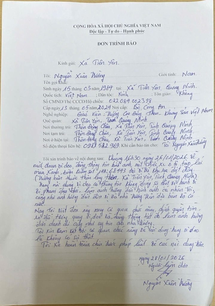 Và thầy đã là đơn trình báo tới cơ quan chức năng!