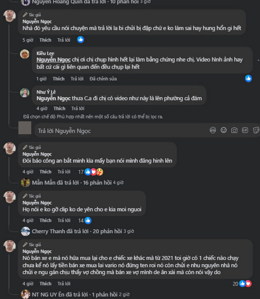 Những ngày gần đây, trên mạng xã hội lan truyền một số hình ảnh và đoạn trích camera an ninh ghi lại cảnh một người phụ nữ bị hành hung tại nhà riêng. Theo nội dung được chia sẻ, nạn nhân bị đánh dẫn đến bầm tím vùng mắt. Sau khi đoạn video được đăng tải, người chồng được cho là đã nhắn tin đe dọa và tìm cách báo cáo (report) nhằm gỡ bỏ clip khỏi mạng xã hội.